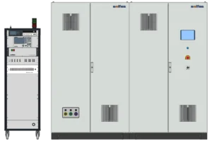 The output frequency range is 50-400Hz, this allows AC induced voltage tests. The wide voltage and current range and the precise regulation are the ideal solution for routine testing of power transformers.